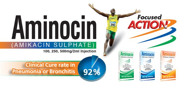 AMINOCIN (AMIKACIN SULPHATE) is a semi-synthetic aminoglycoside antibiotic which is active against a broad spectrum of Gram-negative organisms, including Pseudomonas and some Gram-positive organisms. Chemically, the medicine consists of 2 amino sugars glycosidically linked to deoxy-streptamine whose 1-amino group has been acylated by S-4-amino-2-hydroxy-butyric acid.